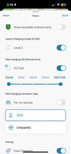 - Smart Filtering: Narrow your search by selecting charger levels (Level 1, Level 2, or DC fast chargers), plug types, availability, and network providers.