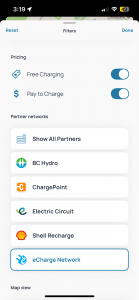 - Smart Filtering: Narrow your search by selecting charger levels (Level 1, Level 2, or DC fast chargers), plug types, availability, and network providers.