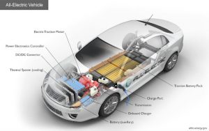 A fully electric car that plugs in to charge and has no gas engine. It produces zero emissions.